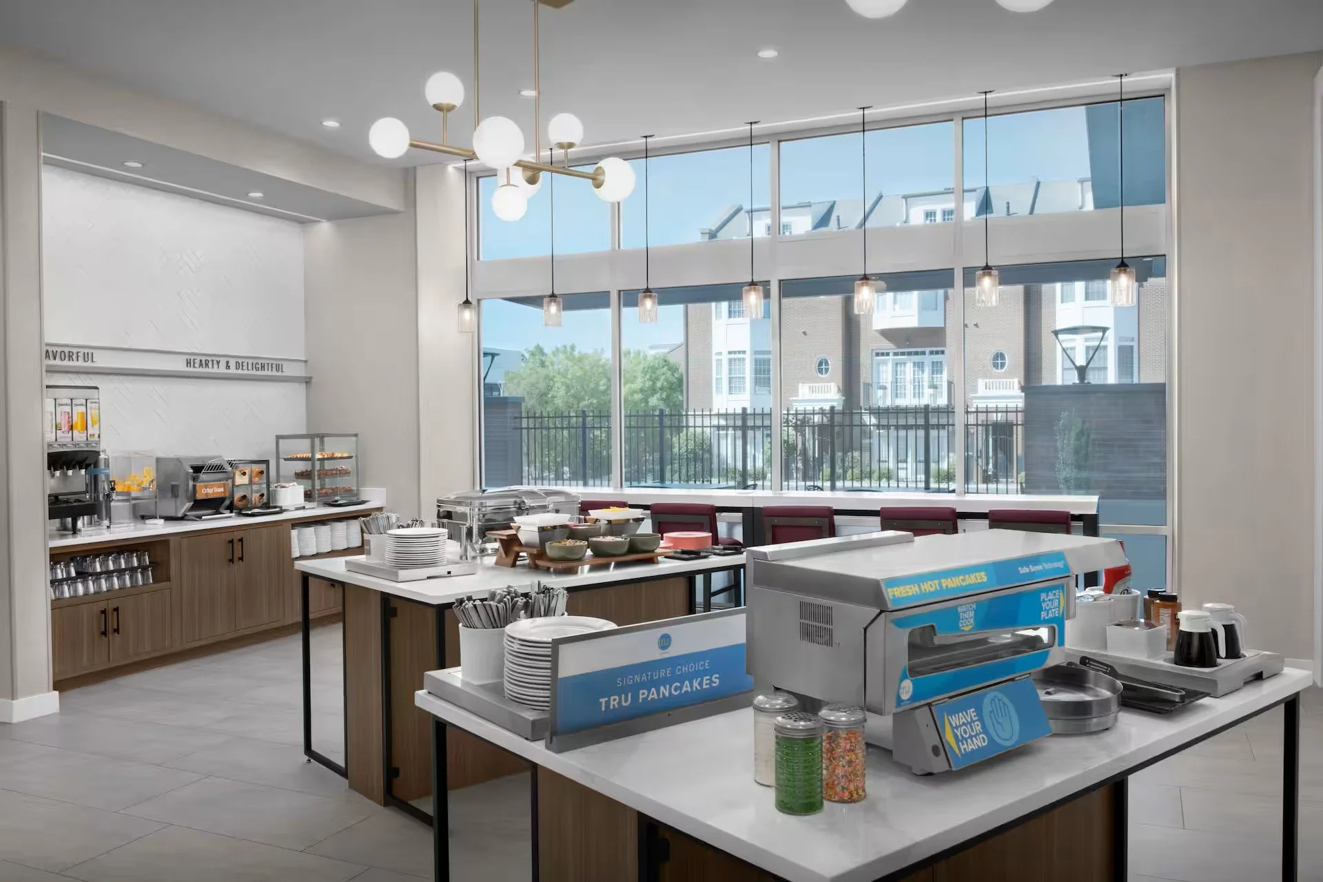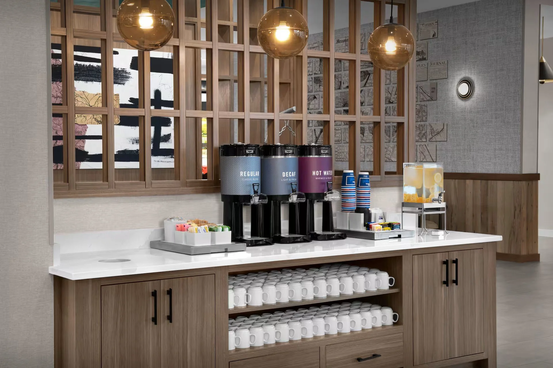 Additional custom quartz installations were completed for the lobby desk, the breakfast buffet, bar, coffee station, business center, fitness center, hydration station, meeting rooms, and outdoor grilling area—delivering a consistent, durable finish throughout the property. Photos provided by Homewood Suites/TRU. Project with thg.